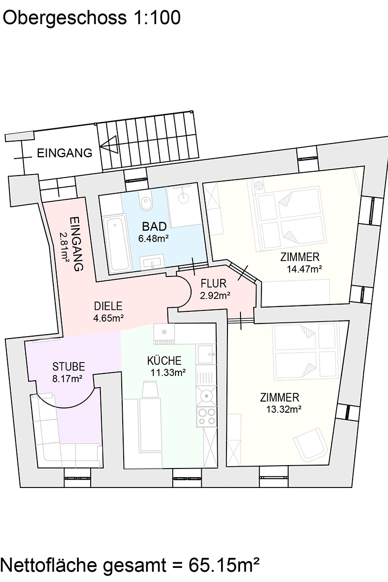 Die gesamte Wohnung verfügt über Bodenheizung und kontrollierter Wohnraumlüftung.